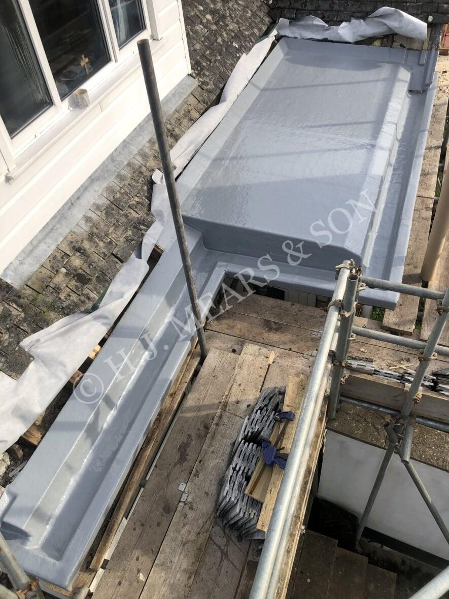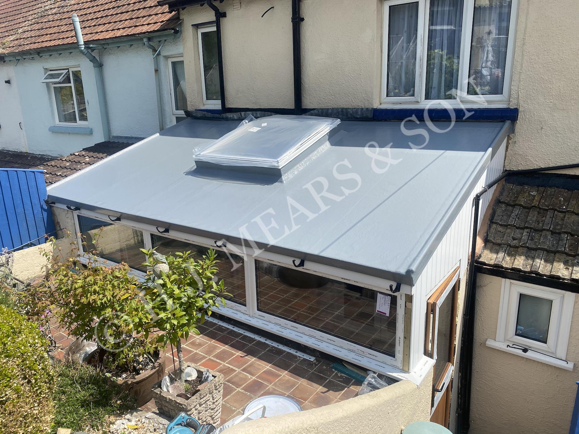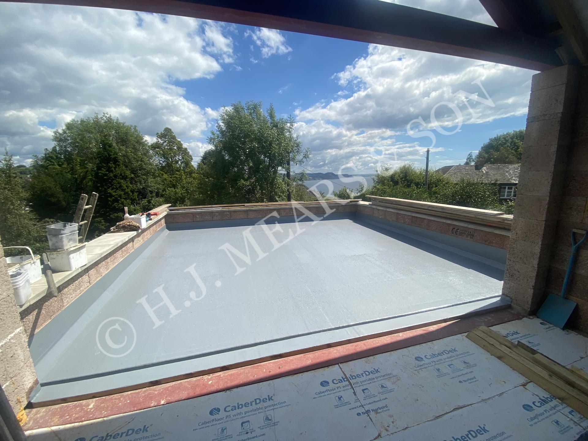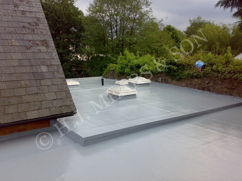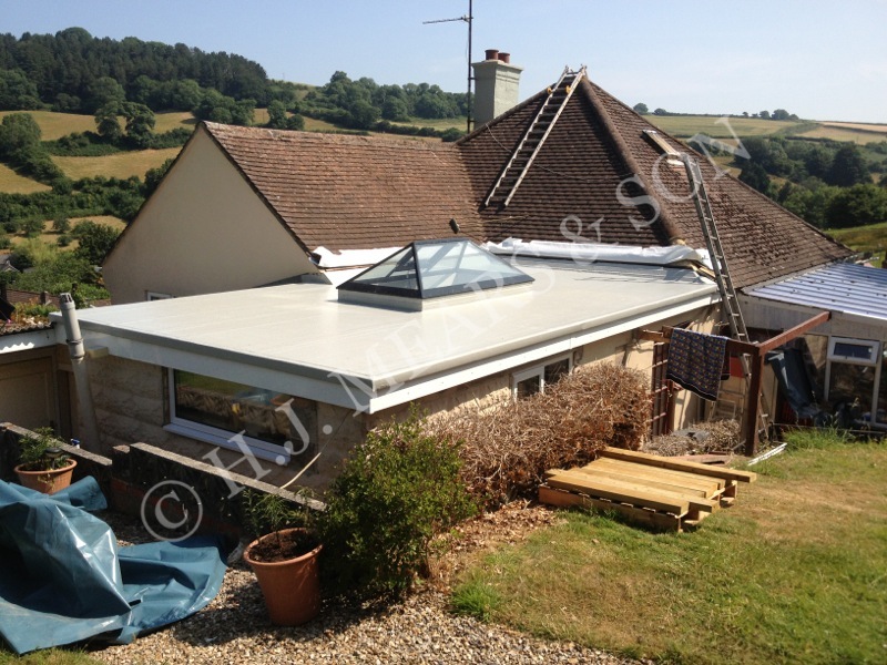 The photos below show GRP/ fibre glass flat roofs in various states of completion. We can incorporate most types of roof light and roof fittings, and different colours are available. Green sedum roof applications have become popular over recent years as they provide habitat for insects and birds, reduce rain water run off, provide insulation and look great. Here at H.J.Mears & Son Boatbuilders we are proud to have undertaken many successful green roof projects in east Devon. Other past fibre glass applications include: