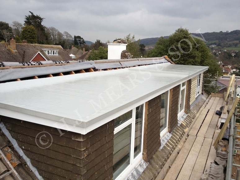 We maintain a Marine Grade standard with Lloyds approved resins and techniques used at all times. Our materials can definitely not be bought at your local builders merchants! We produce our own GRP roofing trims to suit individual requirements; this ensures they are fresh for every job and result in a chemical bond throughout the process. We have undertaken GRP roofing and fibreglass laminating projects as far afield as Cornwall, London and the Channel Islands. We work for both building contractors and home owners in east Devon and west Dorest locations including Exeter, Topsham, Lympstone, Exmouth, Woodbury, Budleigh Salterton, Sidmouth, Branscombe, Honiton, Seaton, Colyton, Axminster, Chard, Crewkerne, Chideock, Lyme Regis, Bridport and West Bay. We have been established as a GRP flat roofing specialist in East Devon since 1982. It was in 1982 that we carried out our very first GRP garage roof, needless to say this roof is still watertight today on Harepath Road, Seaton – that is our guarantee! Quotes can be provided following a free site inspection by us.